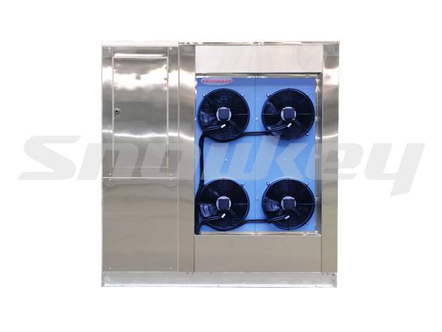 The evaporator is open type design, the freezing plate surface , water spray span, water channel is easy to clean.